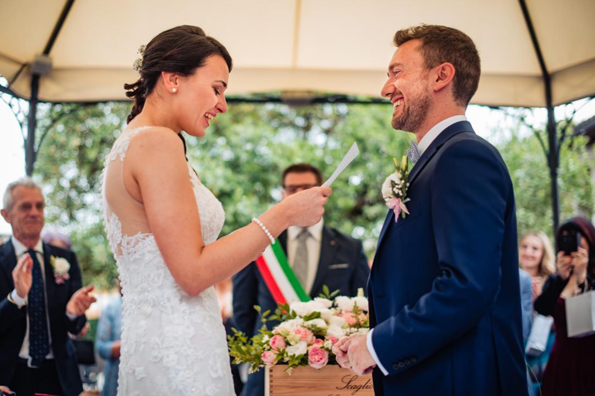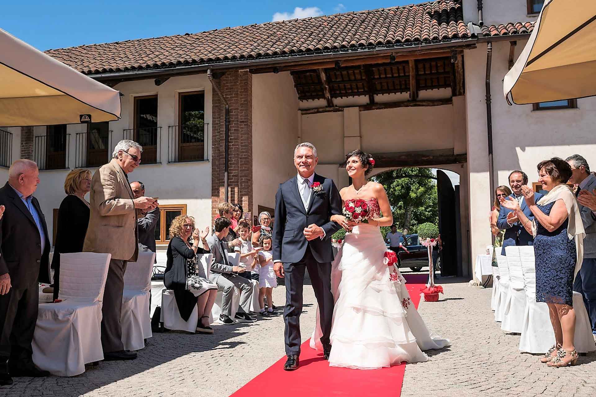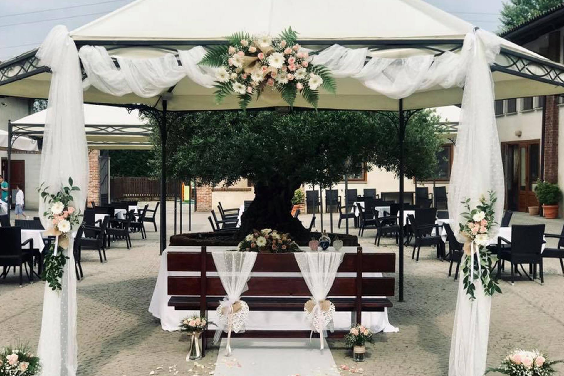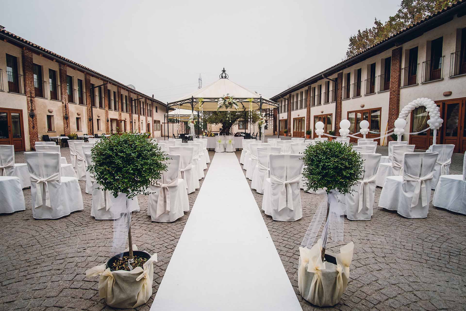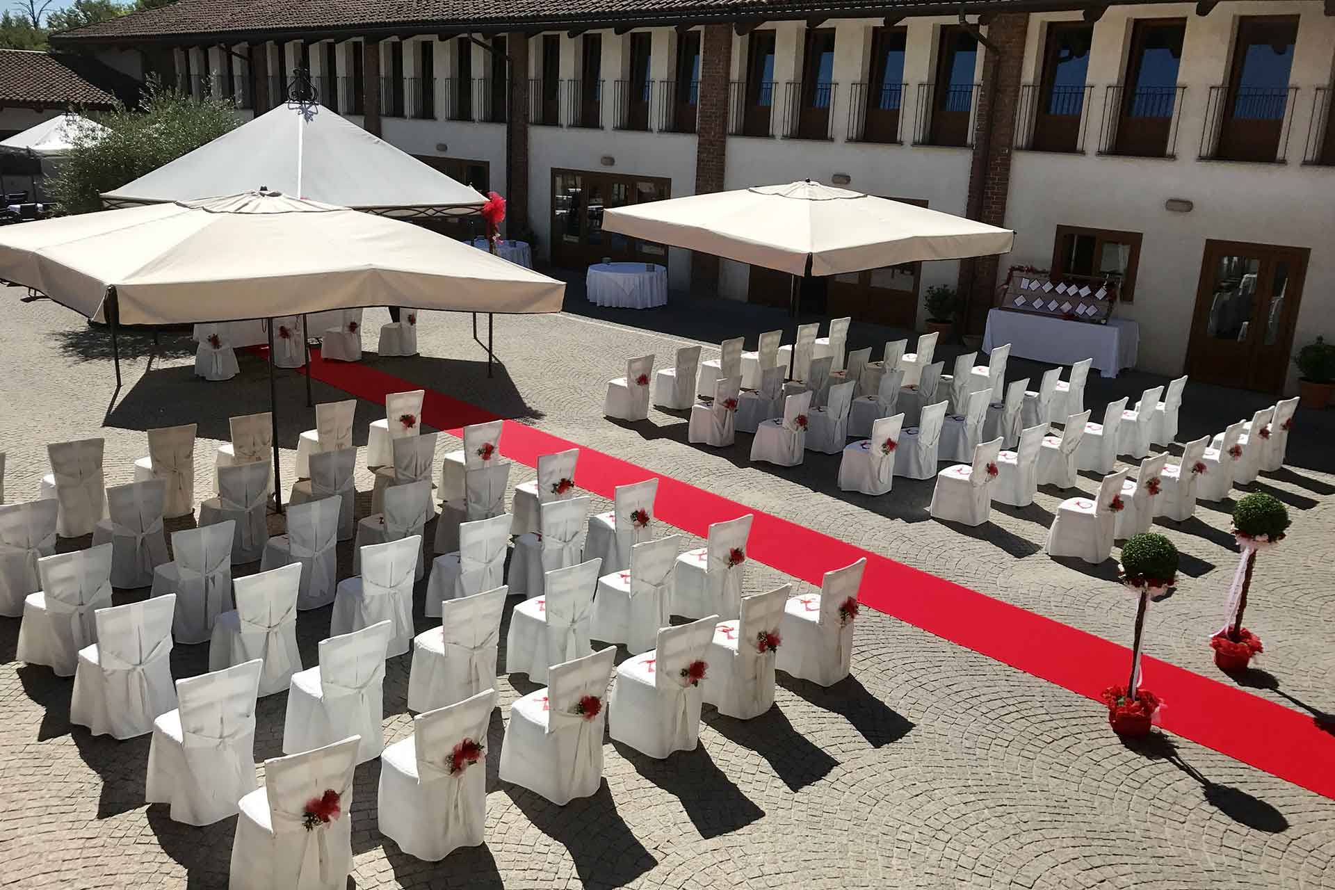 La cerimonia, allestita nella splendida corte, ha il vantaggio di poter essere totalmente personalizzata: dalla marcia nuziale, ai discorsi di amici fino allo scambio delle promesse. Potrete passare direttamente dalla cerimonia ai festeggiamenti perché tutti gli invitati saranno già insieme a voi.
